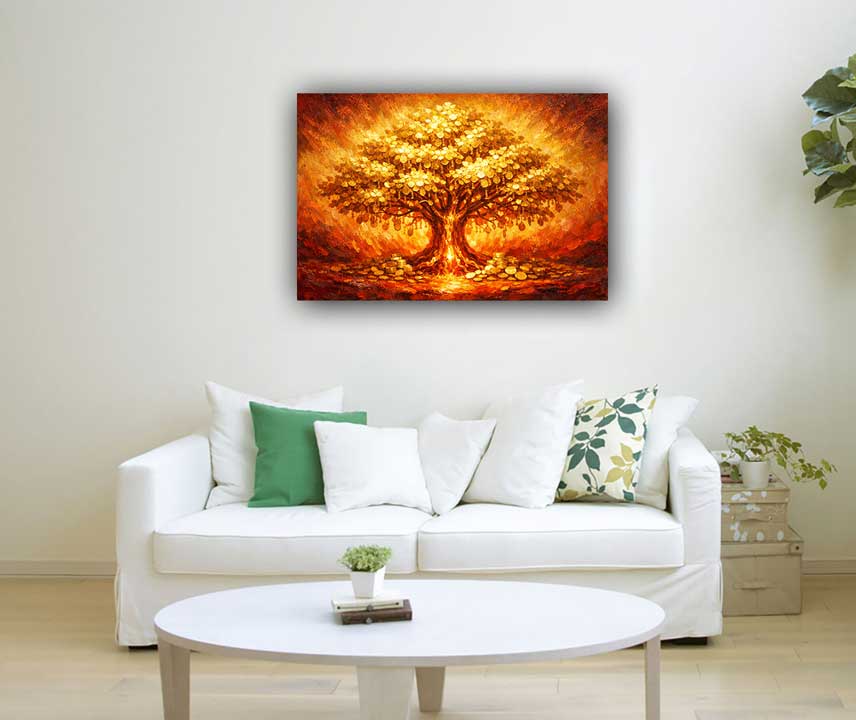 Painting of Radiant Golden Prosperity Tree in South-East for Wealth Generation and Business Growth