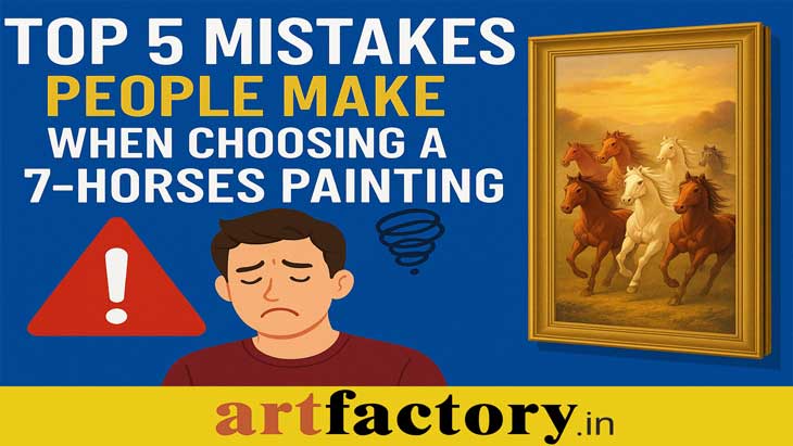 The Seven-Horses painting is a powerful Vastu remedy for momentum, opportunities and recognition — when chosen and placed correctly. If color, direction, background, room choice or image quality are wrong, the painting’s energy gets diluted or misdirected. This guide explains the five biggest mistakes, how to fix them, and gives exact Vastu-friendly painting variants (White, Brown, Blue, Red, Green-forest) so your 7-horses art works for you.