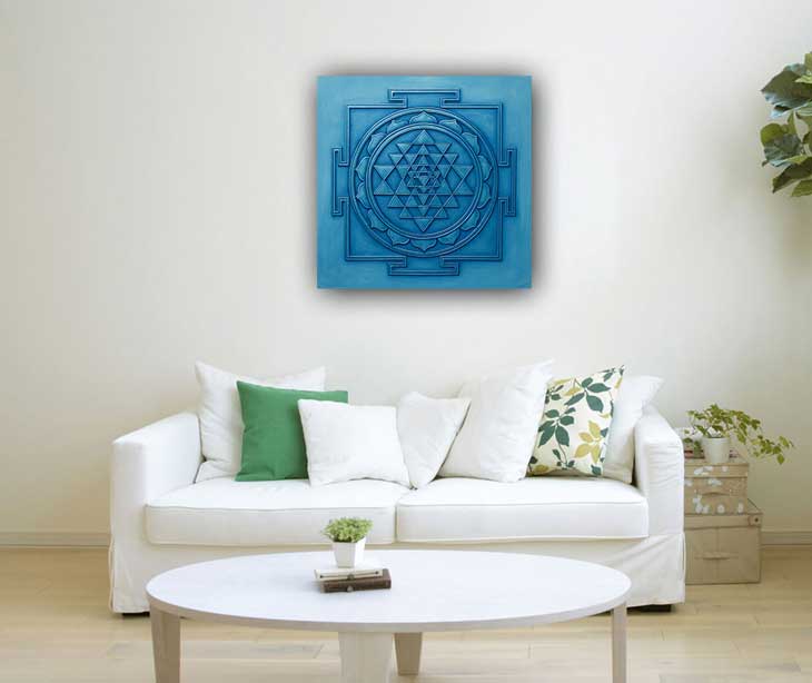 Shri Yantra: Symbol of Prosperity & Energy Balance The Shri Yantra is a sacred geometric symbol representing the union of Shiva and Shakti, and is believed to attract wealth, success, and spiritual growth. It is highly auspicious when placed in the North-East direction as per Vastu Shastra. To enhance its power, use colors based on Vastu elements and directions: North (Water): Blue – for career and opportunities East (Air): Green – for health and growth South (Fire): Red, Orange, Copper – for fame and energy South-West (Earth): Yellow, Earthen, Brass – for stability and relationships West (Space): Blue, Silver – for gains and creativity When combined with the right colors, the Shri Yantra becomes a powerful tool to balance energies and attract abundance.