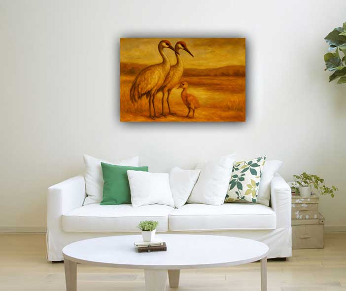 Elegant crane painting that symbolizes loyalty, peace, and long-lasting love.Ideal for southwest wall to enhance harmony and emotional bonding.