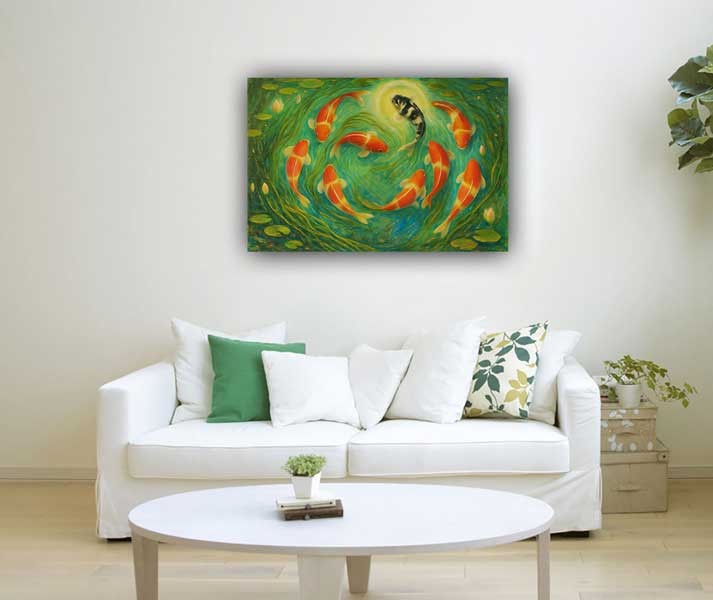 9 Koi Fish painting symbolizing wealth, abundance, and continuous progress as per Vastu. Ideal for enhancing prosperity when placed in the North direction.