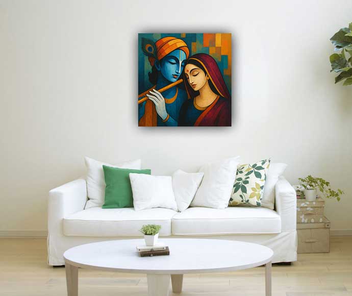 Modern art Radha Krishna paintings that blend divine love with contemporary style. Perfect for adding spiritual elegance to your home, these artworks bring harmony, peace, and devotion to your space.