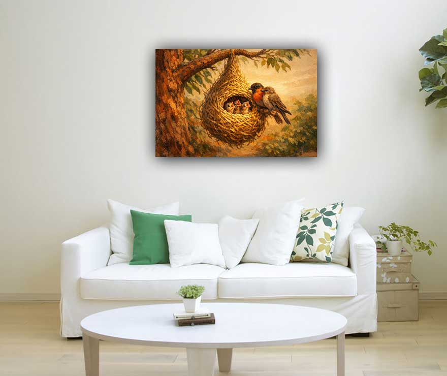 Wall Art Hanging Nest with Birds Painting for Protection, Care & Safe Shelter
