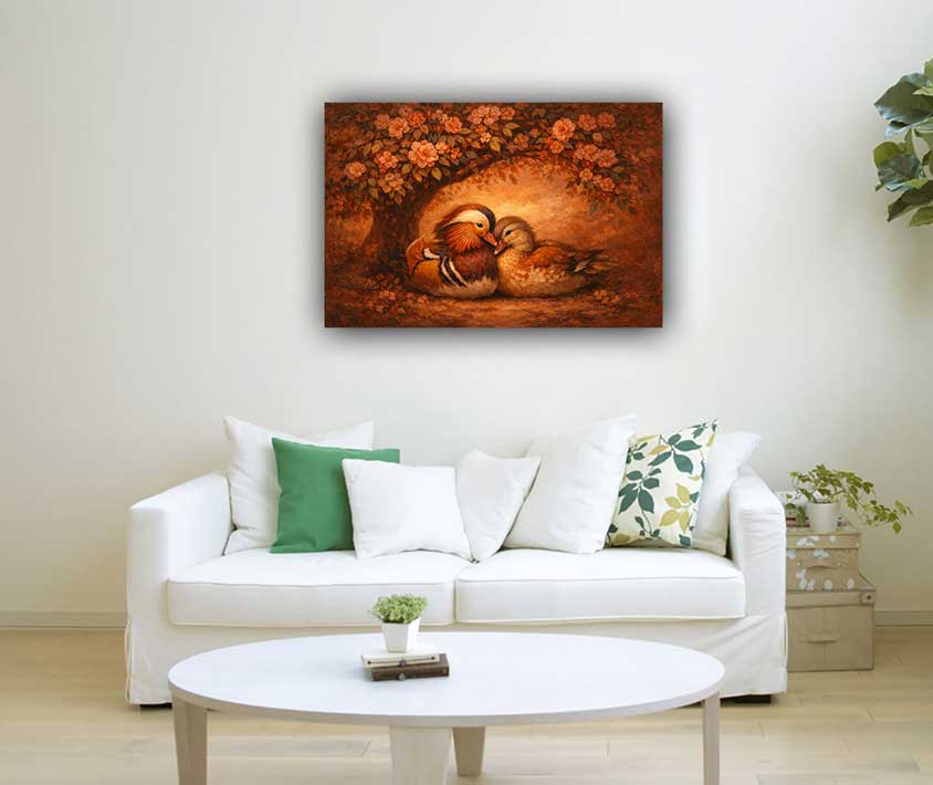 Wall Art Mandarin Ducks Painting for Long-Lasting Partnership, Loyalty & Love