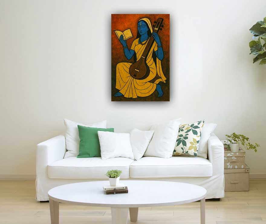 Wisdom and Knowledge: Saraswati is the embodiment of wisdom and learning. A painting of her is believed to enhance intellectual growth, promote academic success, and inspire a deeper understanding of various subjects.