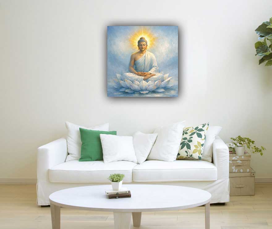 Serene Buddha artwork on canvas promoting peace, awareness, and higher consciousness.For more options,visit:https://artfactory.in/category/spiritual/buddha