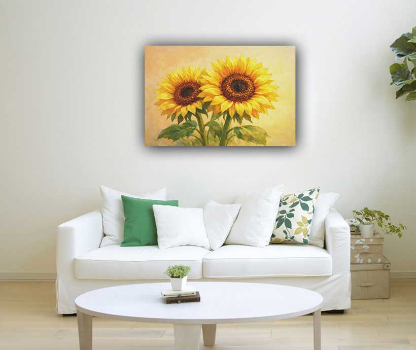 In Vastu-inspired decor, sunflower paintings are believed to attract positive energy, enthusiasm, and emotional warmth into a space. Their bright yellow petals symbolize vitality and joy, helping create an atmosphere of encouragement and motivation.