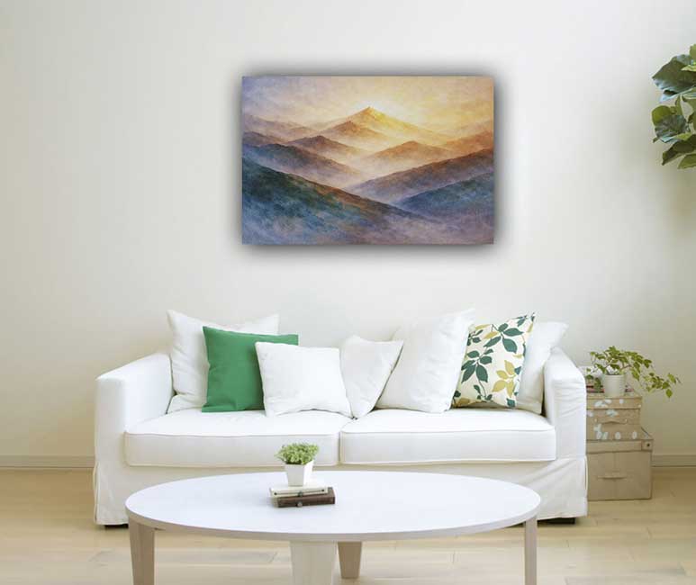 An abstract mountain and sunlight artwork symbolizing success, profits, and long-term gains—perfect for modern canvas wall art and vastu-inspired spaces.For more detials,visit:https://www.artfactory.in/category/Vastu-Feng-Shui/Mountain