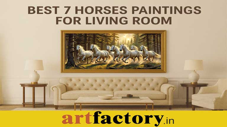 The best 7 horses paintings for the living room are those aligned with Vastu directions and colour elements, bringing prosperity, success, and progress. Choose white or blue tones for North, brown with red for South-East, orange sunrise for South, silver for West, and green/sunrise for East (new beginnings & health). ArtFactory.in offers Vastu-validated, expert-approved designs.