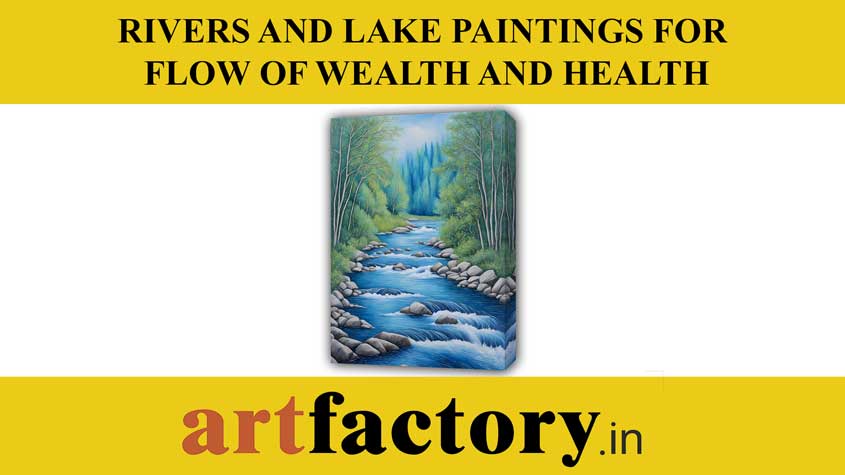 A painting of a river represents the continuous and smooth flow of wealth in your life. Rivers are dynamic, moving water bodies, signifying the active, flowing nature of financial opportunities. According to Vastu: