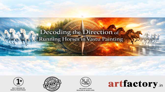 Running horses are among the most popular Vastu paintings worldwide. From Indian apartments to luxury homes in the USA, the 7 horse painting is considered a symbol of progress and victory.