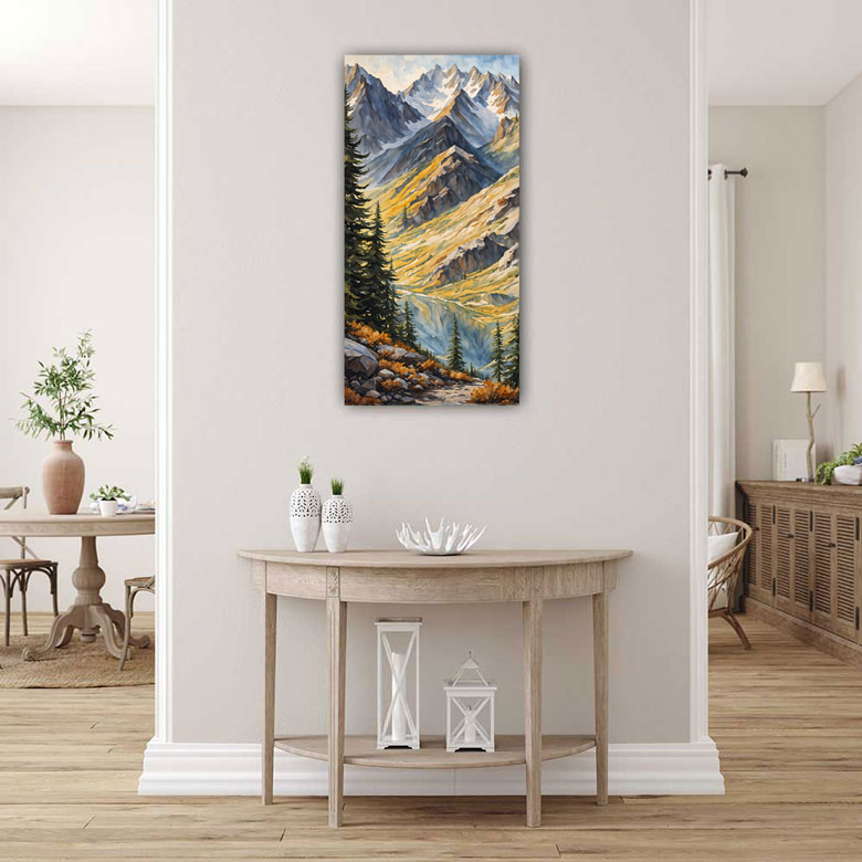 A mountain painting embodies strength and resilience, symbolizing the ability to overcome obstacles and reach new heights. In both Vastu Shastra and Feng Shui, placing mountain paintings in the south promotes stability and steady progress. This placement aligns with principles that foster fame, recognition, and success, creating a harmonious environment conducive to achievement.