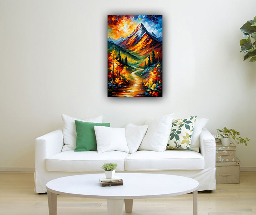 A mountain painting embodies strength and resilience, symbolizing the ability to overcome obstacles and reach new heights. In both Vastu Shastra and Feng Shui, placing mountain paintings in the south promotes stability and steady progress. This placement aligns with principles that foster fame, recognition, and success, creating a harmonious environment conducive to achievement.