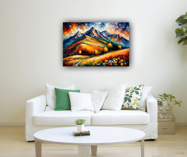 A mountain painting embodies strength and resilience, symbolizing the ability to overcome obstacles and reach new heights. In both Vastu Shastra and Feng Shui, placing mountain paintings in the south promotes stability and steady progress. This placement aligns with principles that foster fame, recognition, and success, creating a harmonious environment conducive to achievement.