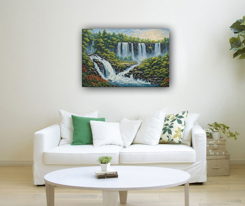 Similarly, in Feng Shui, the art of arranging spaces to promote harmony and balance, waterfall paintings are considered powerful tools for wealth manifestation. According to Feng Shui principles, water is associated with prosperity and abundance. A waterfall painting placed in the southeast corner of a room or space, which is the wealth corner according to Feng Shui, is believed to enhance financial luck and abundance.