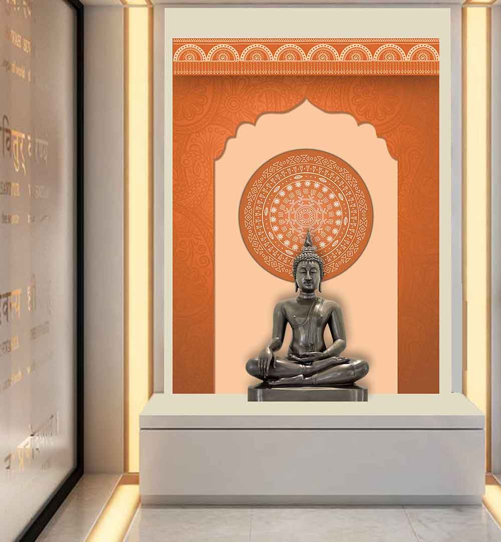 Beautiful Mandir Wall backdrop on high quality wallpaper vinyl sticker impart a divine ambience to your Puja room.