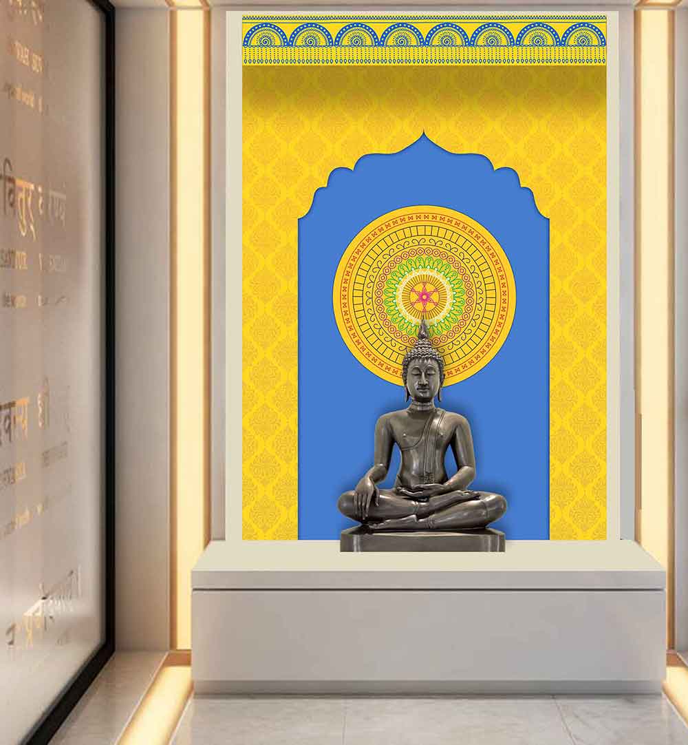 Beautiful Mandir Wall backdrop on high quality wallpaper vinyl sticker impart a divine ambience to your Puja room.