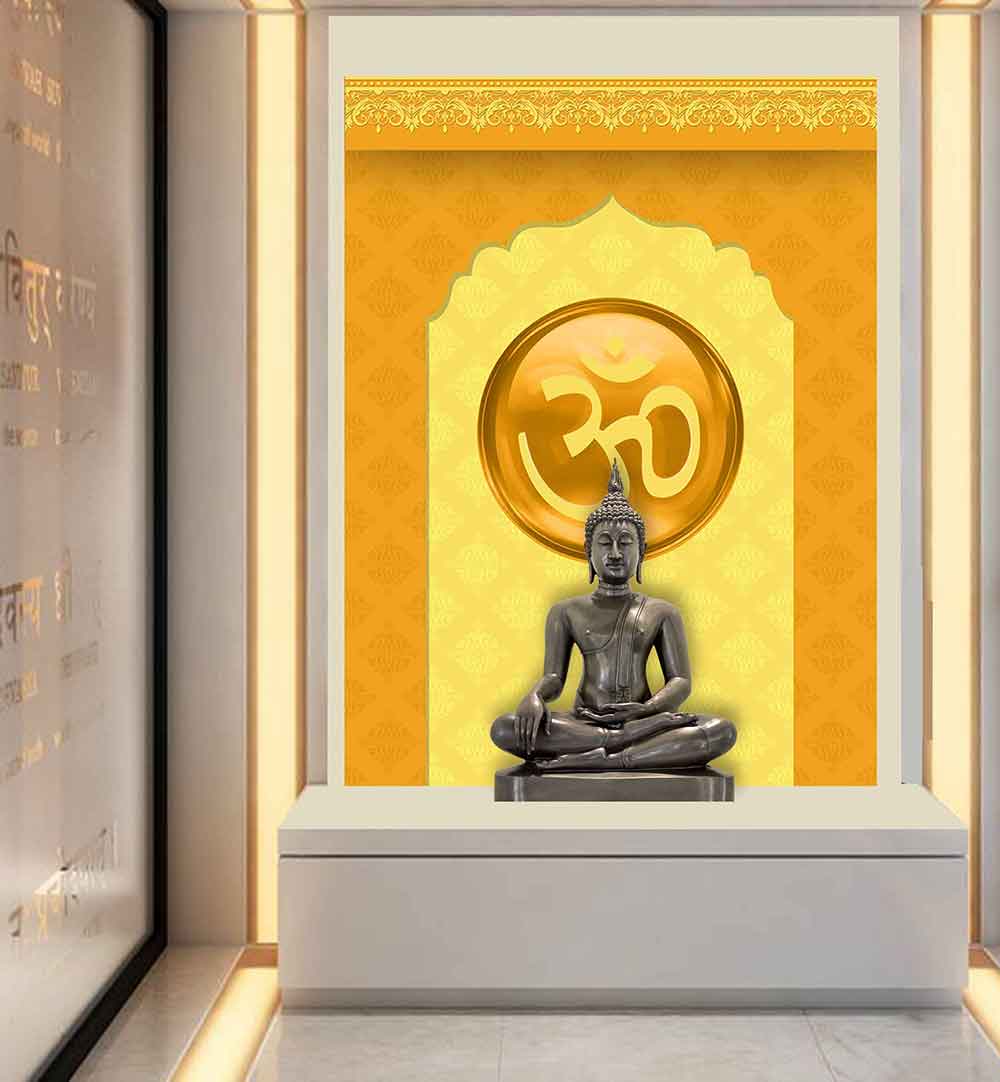 Beautiful Mandir Wall backdrop on high quality wallpaper vinyl sticker impart a divine ambience to your Puja room.