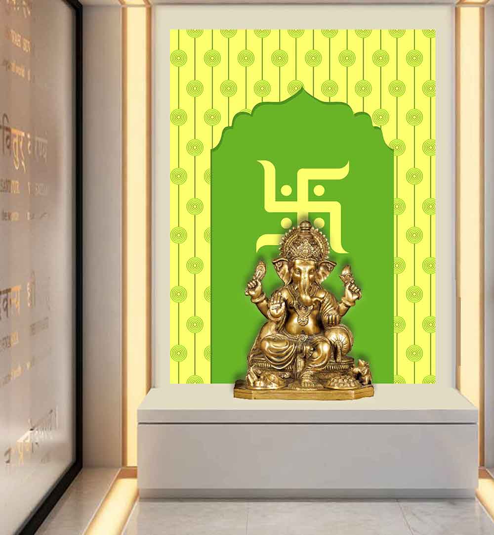 Beautiful Mandir Wall backdrop on high quality wallpaper vinyl sticker impart a divine ambience to your Puja room.