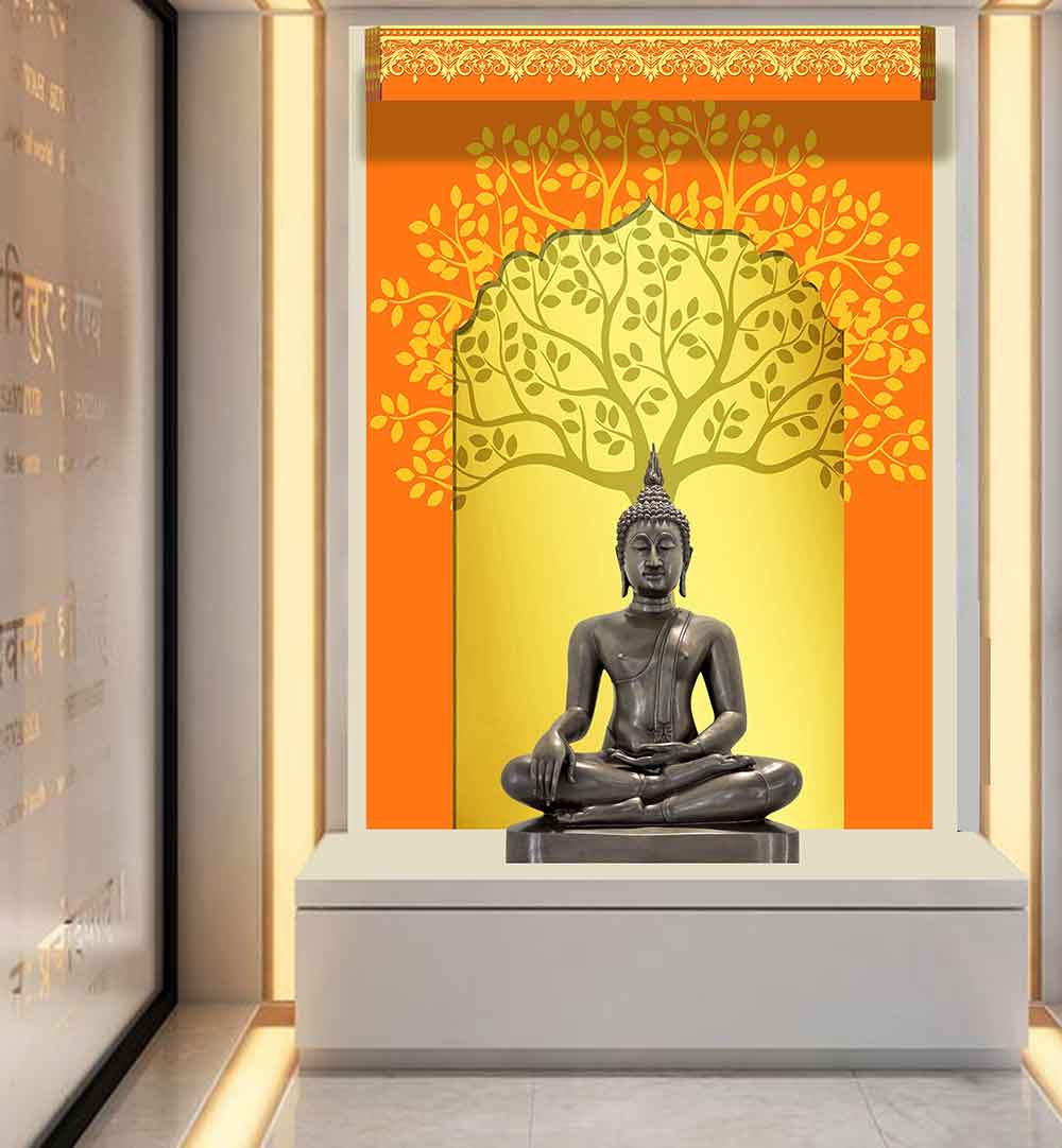 Beautiful Mandir Wall backdrop on high quality wallpaper vinyl sticker impart a divine ambience to your Puja room.