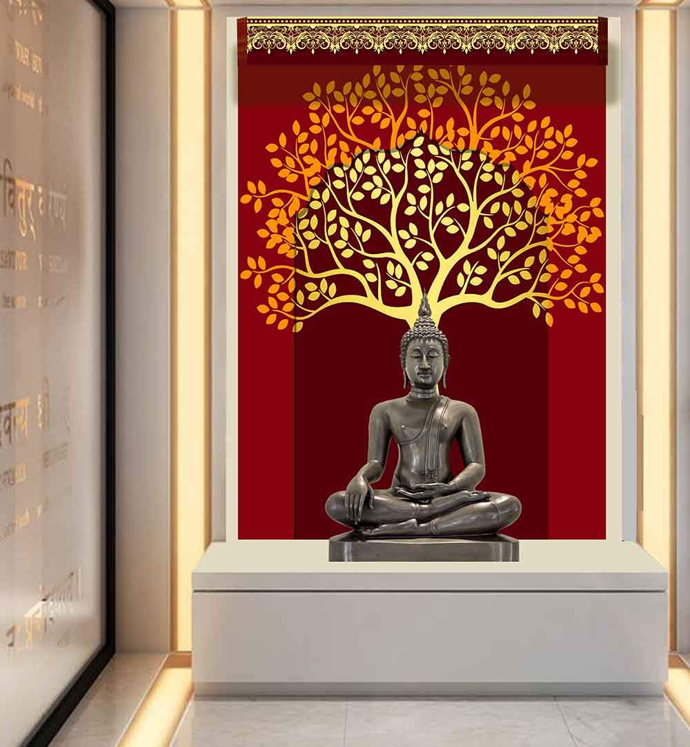 Beautiful Mandir Wall backdrop on high quality wallpaper vinyl sticker impart a divine ambience to your Puja room.