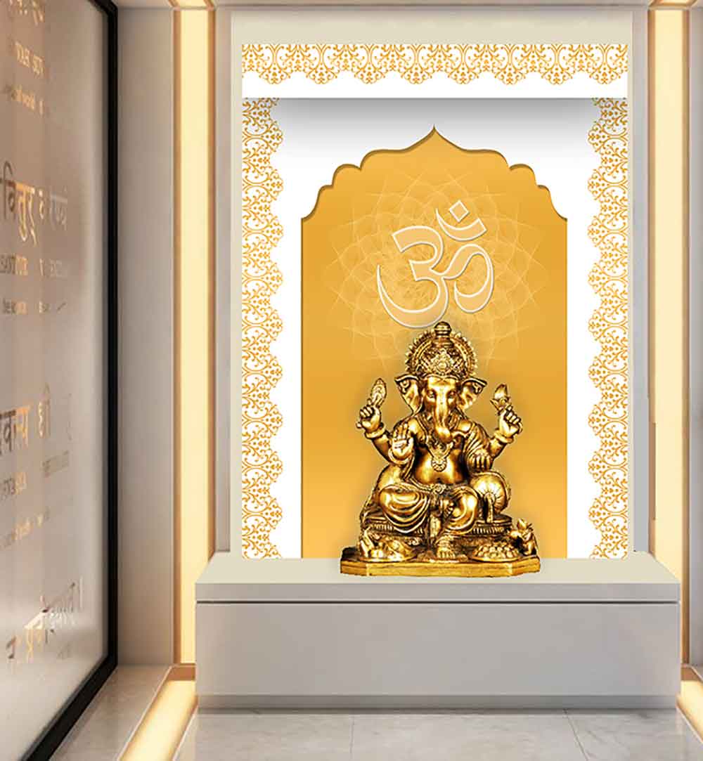 Beautiful Mandir Wall backdrop on high quality wallpaper vinyl sticker impart a divine ambience to your Puja room.