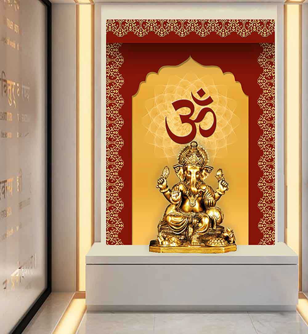 Beautiful Mandir Wall backdrop on high quality wallpaper vinyl sticker impart a divine ambience to your Puja room.