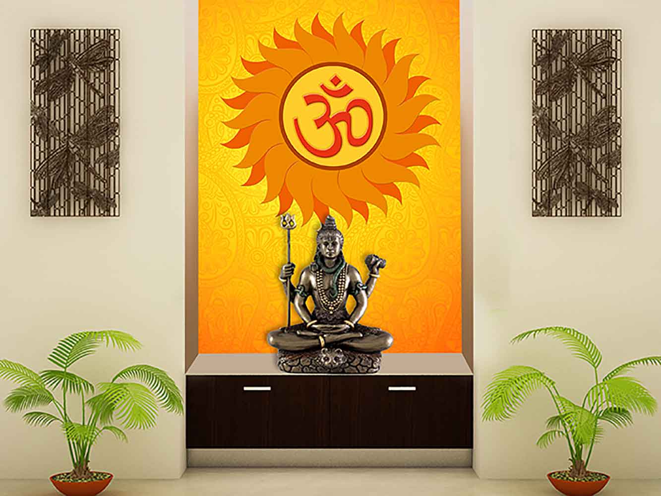 Beautiful Mandir Wall backdrop on high quality wallpaper vinyl sticker impart a divine ambience to your Puja room.