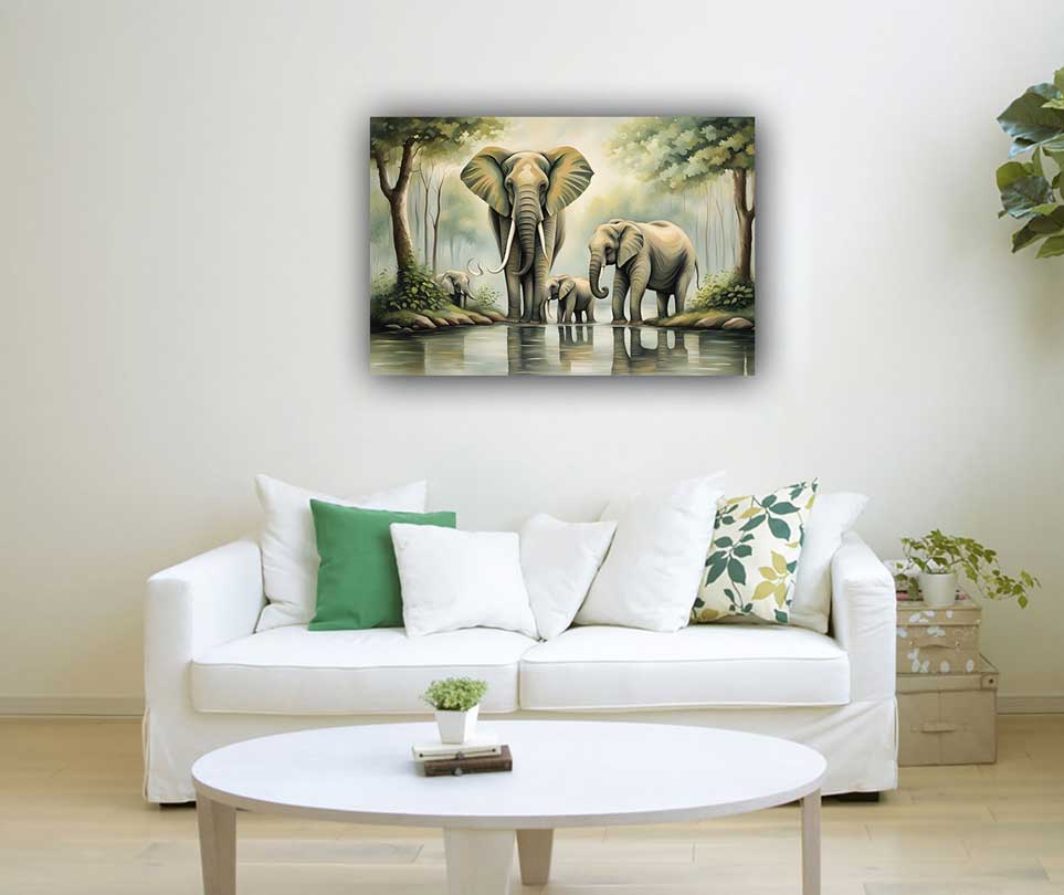Enhance your home's harmony and prosperity with a Feng Shui elephant family painting. This artwork symbolizes strength, unity, and protection, perfect for a peaceful and prosperous living environment.