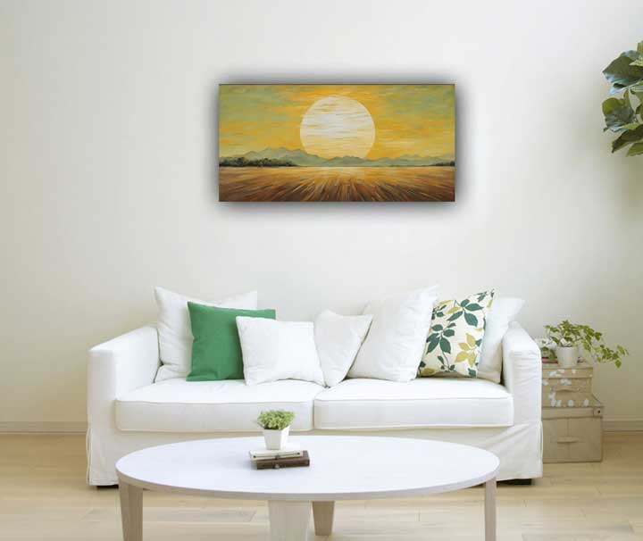 Attraction of Opportunities: The dawn of a new day is synonymous with fresh opportunities and potential. A rising sun painting embodies this concept, symbolizing the endless possibilities that each new day brings. Placing this artwork in your home or office can stimulate motivation and encourage the pursuit of new ventures, enhancing career prospects and personal growth. It acts as a constant reminder to seize opportunities and embrace change with confidence.