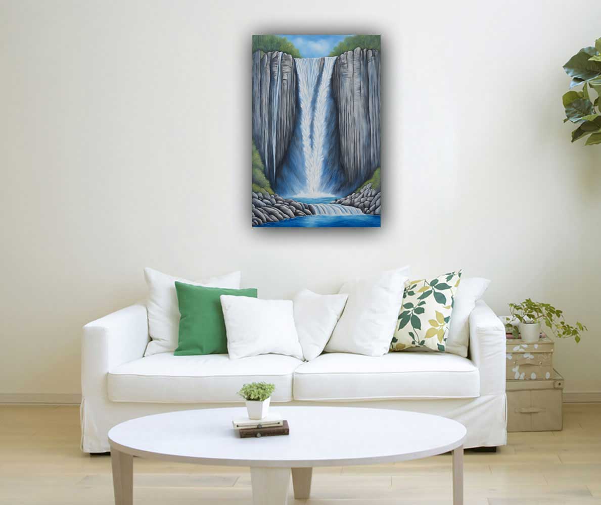A waterfall painting symbolizes the continuous flow of energy, growth, and opportunities, making it a powerful tool for attracting career success. The cascading water represents the movement of positive energy, signifying the steady progress and momentum needed for professional growth. In Vastu Shastra, water is associated with abundance, prosperity, and the flow of life, making this painting an ideal choice for enhancing career prospects. Ideal Placement on the North Wall According to Vastu Shastra, the North direction is governed by the water element and is linked to career and professional success. Placing a waterfall painting on the North wall of your home or office helps activate and amplify the energy in this area, encouraging the flow of new opportunities and career advancement. This placement ensures that the positive vibrations of the waterfall align with the natural energy of the North, promoting a steady and successful career path. Explore beautiful collection of waterfall painting Click Here