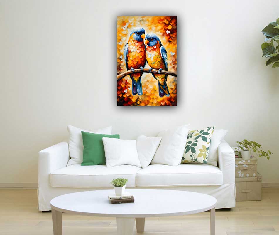 Placing a Pair of Love Birds painting in the South West corner of your space aligns with Vastu principles and enhances relationship energy. This strategic placement fosters warmth, unity, and emotional connection, creating a supportive and loving atmosphere.