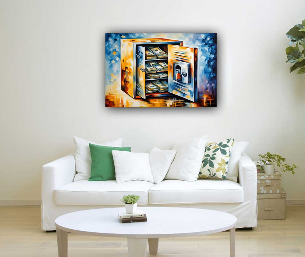 West Direction and Gains & Profit: The West direction in Vastu Shastra is associated with gains, profits, and financial prosperity. It is the ideal location for symbols that represent wealth and financial success. A painting of a money bag, when placed in the West direction, symbolizes abundance, financial security, and prosperity. The money bag, often depicted overflowing with cash, represents a rich source of wealth and the secure management of finances. Positioning this painting in the West aligns your space with the energies of profit and financial growth. It acts as a visual cue to attract and enhance wealth, ensuring a steady flow of resources and reinforcing your financial aspirations.