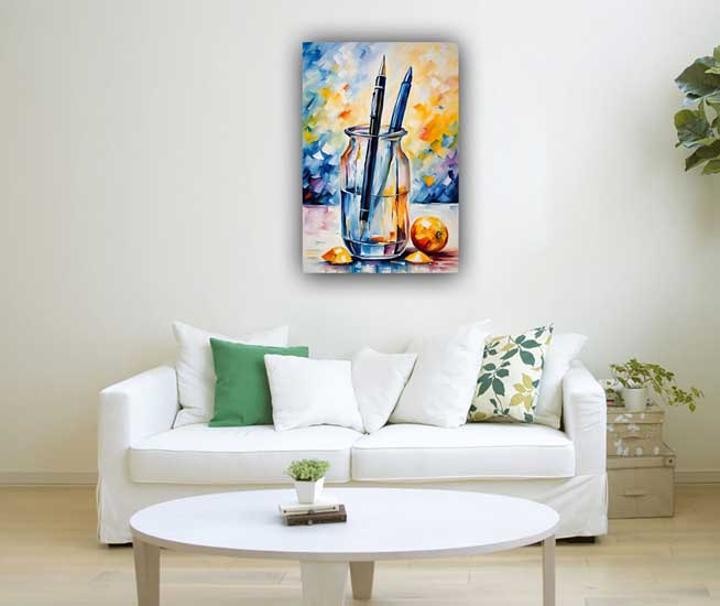 In Vastu Shastra, the West-South-West (WSW) direction is associated with Knowledge and Education. A painting of a pen in this direction symbolizes the power of learning, communication, and intellectual growth.