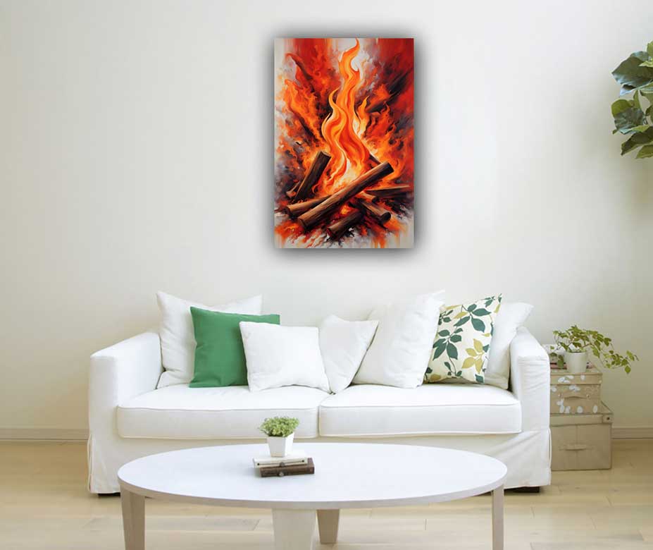 In a bonfire painting, the vibrant reds and oranges represent the intense warmth of passion and the transformative power of fire. Just as a bonfire illuminates the darkness, this painting invites positive energy and brings clarity to one's ambitions and aspirations. The flames dance upward, signifying the rise of recognition and the constant push toward higher achievements. The painting’s warm tones are energizing, filling the space with enthusiasm and sparking the inner fire needed to pursue one’s goals with vigor.