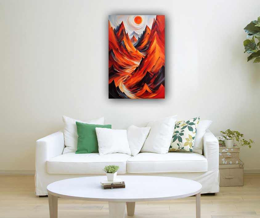 Enhance fame and recognition with a stunning mountain painting, ideal for the South direction. This artwork symbolizes passion and enthusiasm, perfectly complementing red and orange colors for a powerful and dynamic presence. Ideal for boosting your reputation and energy. Explore beautiful collection of Mountains Click Here
