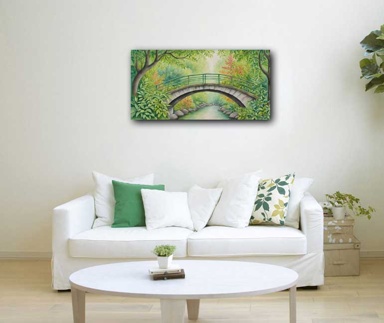 The East direction, linked to social connection and growth, is represented by green. A painting of a bridge in a lush green forest placed here enhances relationships and communication, symbolizing transition and connection while promoting a nurturing, harmonious environmentExplore beautiful collection of Bridges Click Here
