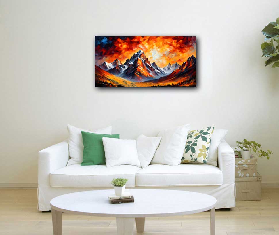 South-West Direction: Placing a mountain painting in the South-West area enhances relationships, marital stability, and emotional support. This direction governs love, partnerships, and the nurturing energy of the Earth element. A mountain painting in this sector creates a sense of security and groundedness in relationships, fostering deeper connections and long-term commitment.