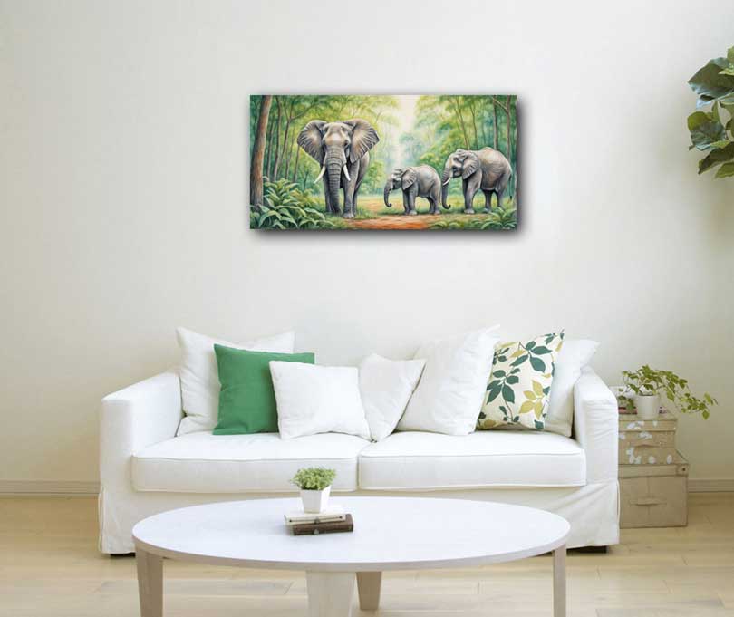In Vastu Shastra, the East Direction symbolizes social connections, fresh beginnings, and growth. Represented by the color green, it signifies renewal and vitality. A painting of Elephants in a group with the rising sun perfectly captures the essence of this direction. The elephants represent unity, strength, and loyalty, while the rising sun embodies new opportunities and fresh starts. This combination promotes strong relationships, fostering a sense of community and connection. Ideal for placement in the East, it energizes the space with positive vibes, encouraging growth and harmonious social interactions. Explore beautiful collection of Elphants painting Click Here