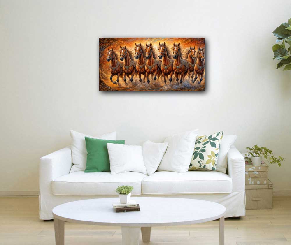 Success and Recognition: The rising sun boosts your visibility and helps in gaining recognition. The 8 running white horses further energize this success, making it dynamic and impactful.