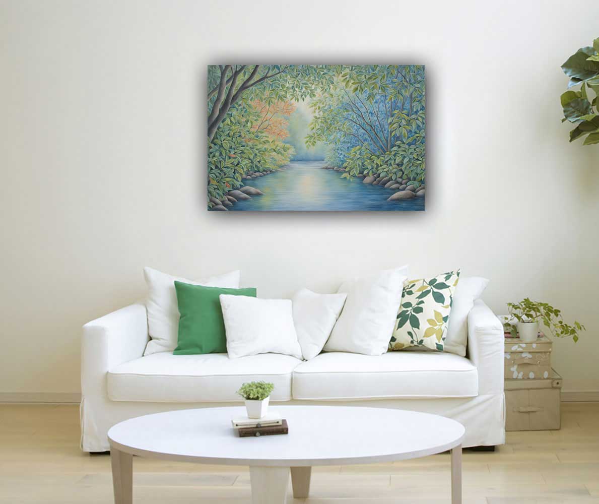 A River Painting: Flowing with Opportunities, Health, and Well-being A river painting symbolizes the continuous flow of opportunities, health, and renewal. Its flowing water represents career growth, abundance, and emotional balance. For career opportunities, place it in the North, aligned with the water element for success. For health and well-being, the ideal placement is in the North-East, promoting vitality and mental clarity.