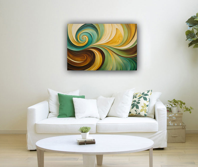 Enhance your living space with this abstract art featuring uplifting spirals and swirls in shades of green, brown, and beige. Designed for placement in the East direction, this painting promotes health, positive energy, and growth as per Vastu Shastra.