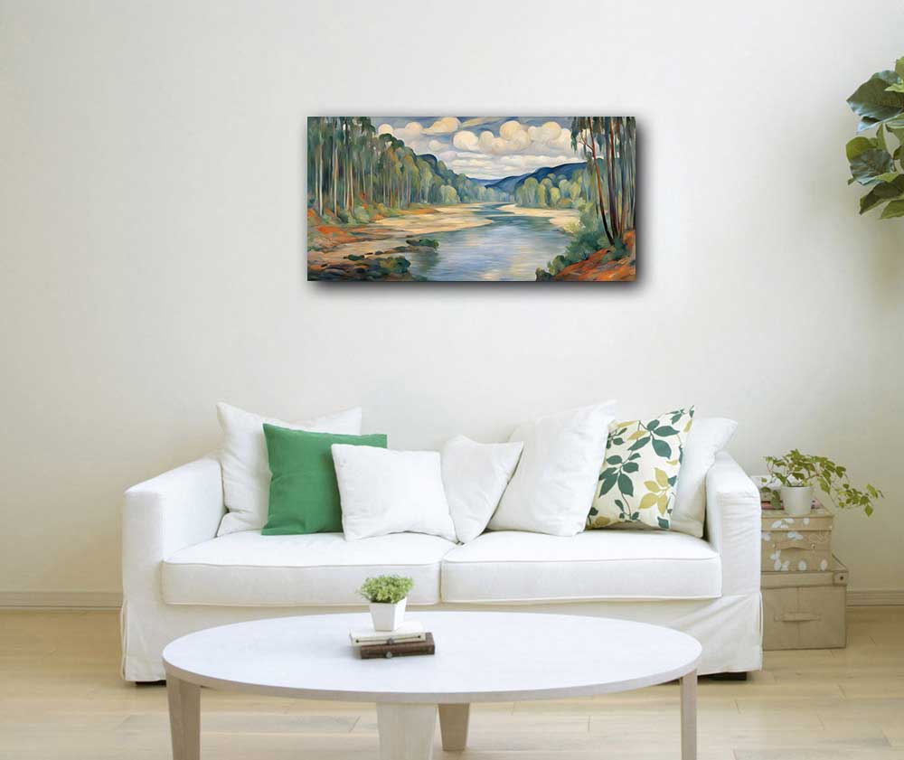 According to Vastu, water elements like rivers symbolize wealth and purification. Placing a river painting in your home or office can invite positive energy and financial growth. Here’s why river paintings are important:
