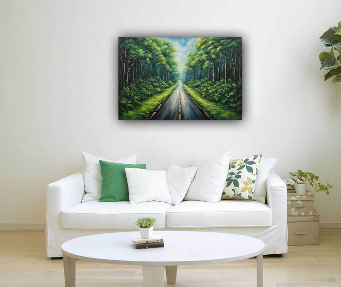 For optimal benefits, the Endless Path Painting should ideally be placed in the North direction, as it enhances clarity and focus, guiding you toward your goals and oppurtunities. Additionally, if the painting features a forest scene, it can be beautifully placed in the East direction to promote vitality and growth, further reinforcing the themes of exploration and new beginnings.