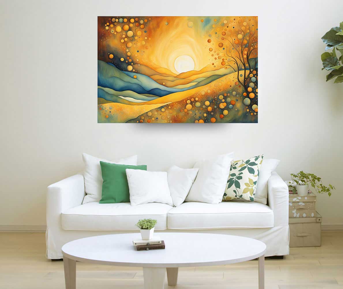 Enhance your space with the Rising Sun Painting, designed specifically for the East direction as per Vastu Shastra. This beautiful artwork captures the calming essence of rolling hills and the promise of a rising sun, symbolizing growth, vitality, and fresh beginnings.