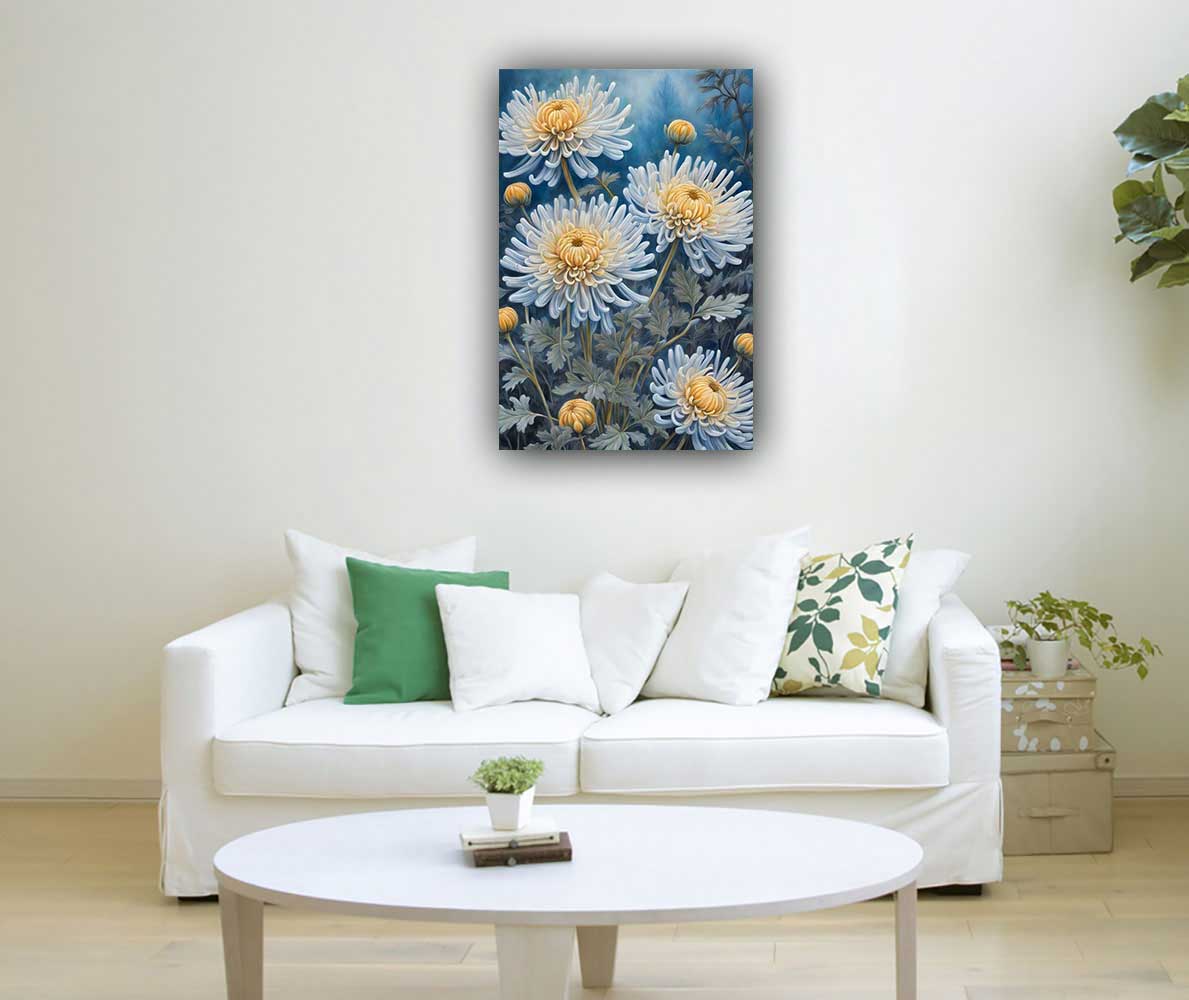 Enhance peace and harmony with this Chrysanthemum Painting, ideal for the northeast direction as per Vastu Shastra. Promote mental clarity, balance, and positive energy in your home or office. Perfect for meditation spaces and living areas.