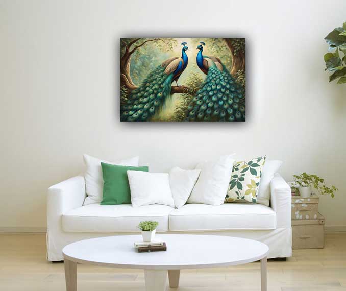 Prosperity: Regarded as a symbol of abundance and royalty, a peacock painting is believed to bring prosperity and growth to your surroundings, enhancing wealth and happiness.