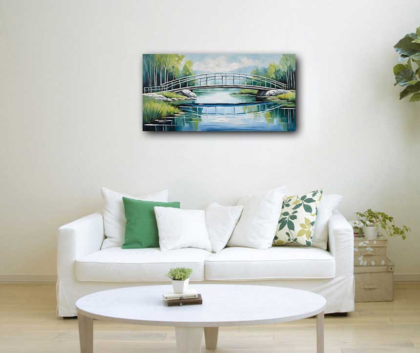 Sturdy Bridge Over Serene Lake - Vastu Painting for North Direction