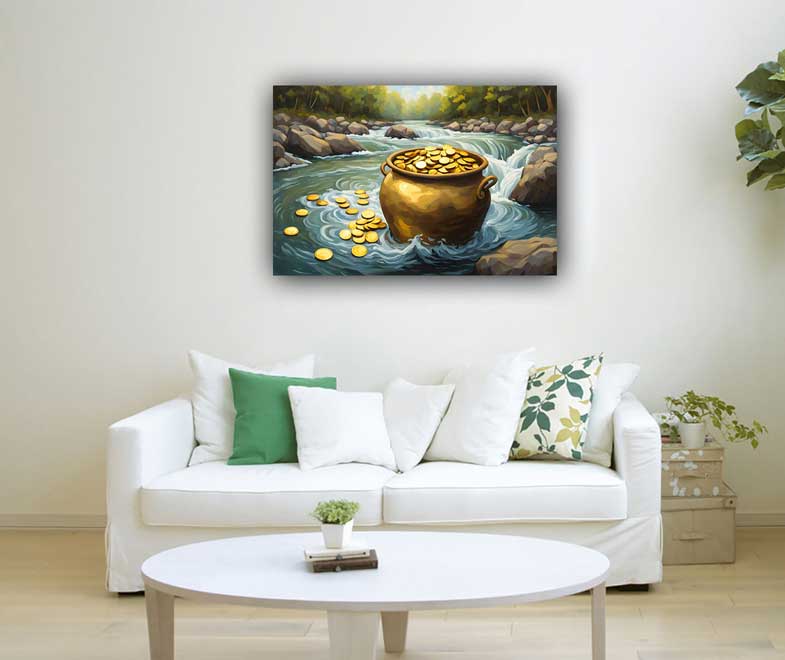Pot of Gold Coins in Flowing River Artwork (North Direction Vastu)