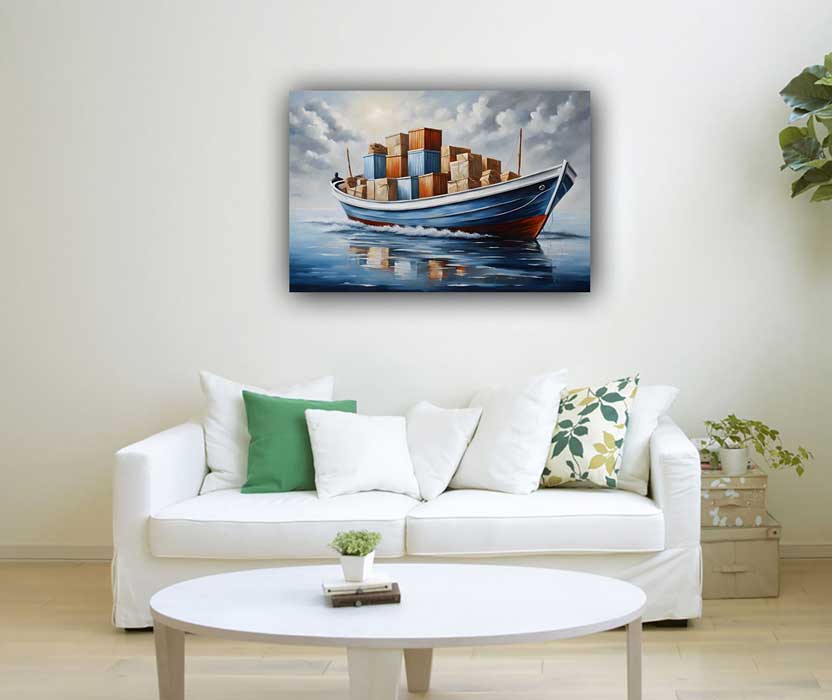Discover the power of Vastu with our painting of a boat carrying goods, ideal for the North direction. Enhance career growth, financial success, and the flow of opportunities with this meaningful artwork. Perfect for home or office spaces.